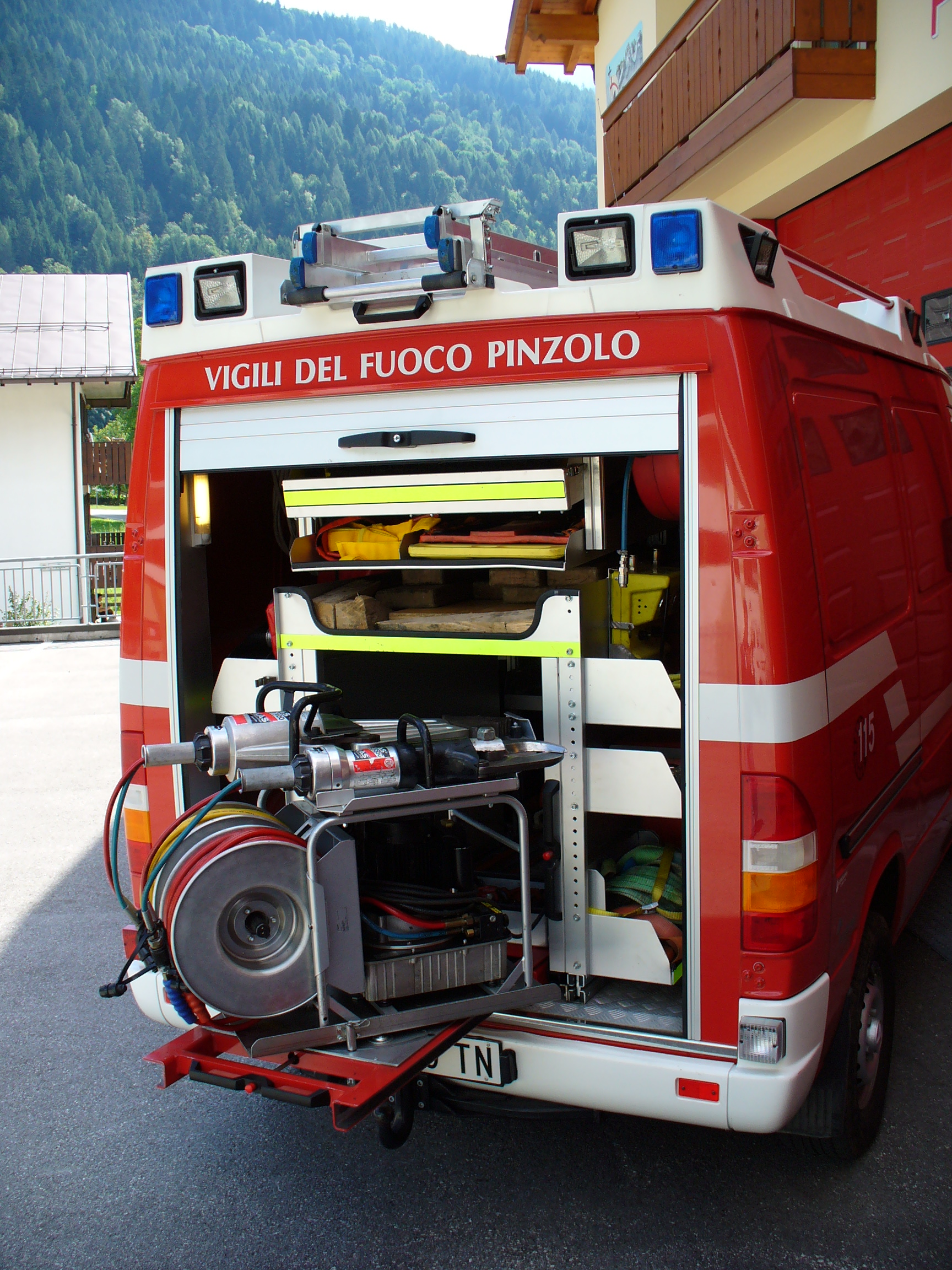 anno di messa in servizio: 2003, allestimento "Brandshutz Antincendi", pinza idraulica Lukas con divaricatore LSP 100 e cesoia LS 300 C utilizzabili contemporaneamente,